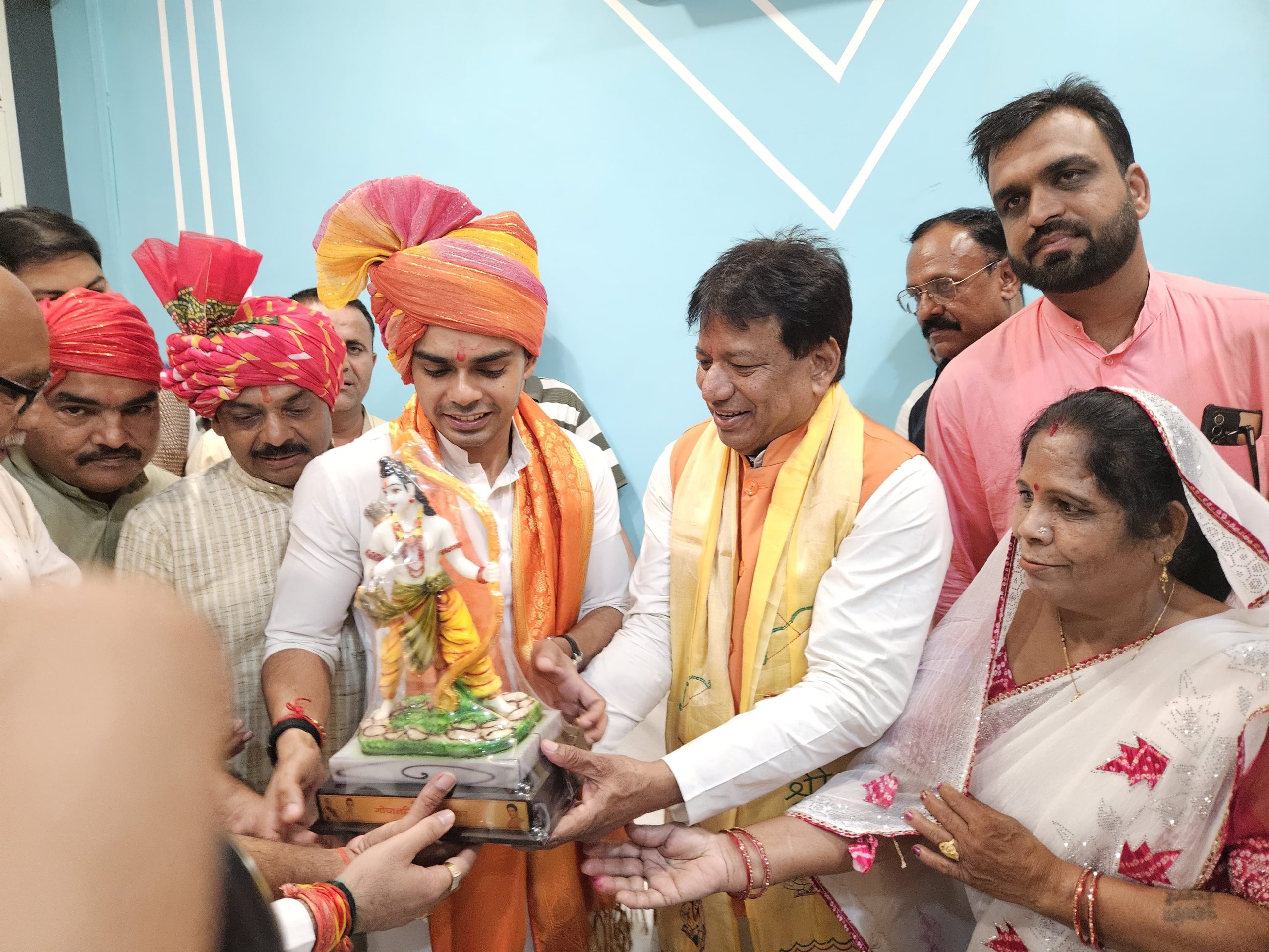 कार्तिकेयसिंह चौहान का विधायक कार्यालय पर विधायक गोपालसिंह इंजीनियर के नेतृत्व में किया भव्य स्वागत और सम्मान भगवान श्री राम की प्रतिमा स्मृति चिन्ह के रूप में की भेंट